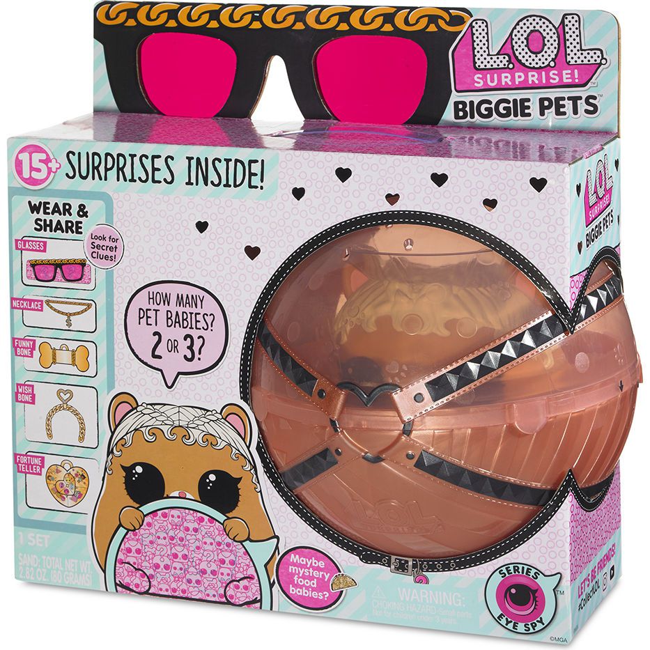 Тепер модні улюбленці LOL стали більше! Шукай всередині нові модні сюрпризи: всередині великої кулі-великий улюбленець -хомячка можна використовувати як скарбничку і носити з собою -всередині вихованця заховані 3 коробочки з кінетичним піском, в яких ви знайдете два стандартних улюбленця LOL і одного міні -любімца з аксесуарами опустіть улюбленців в теплу і холодну воду-може бути вони змінюють колір? в наборі модний ошийник для улюбленця, який може бути і браслетом для маленької господині стильний чокер для дівчинки, який можна використовувати як ручку для Вашого кульки 3 шарму для браслета або чокера: кісточка бажань, кісточка з секретним меседжем, сердечко з передбаченнями окуляри для розшифровки секретних меседжів